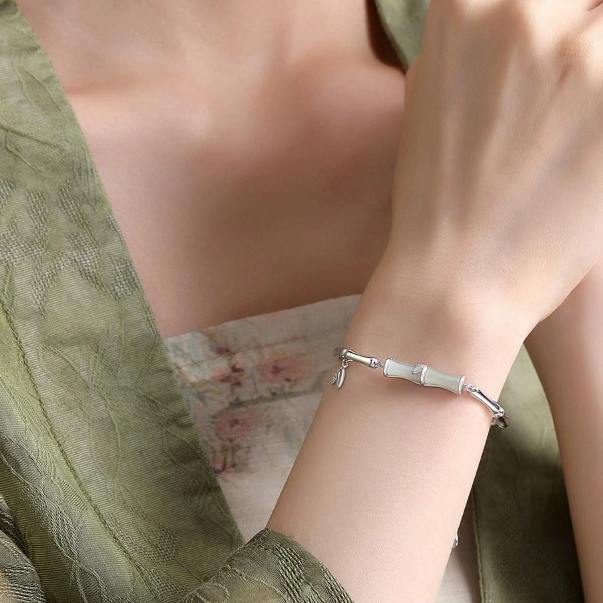 🌿Náramok z hetianského nefritu a bambusu🎍