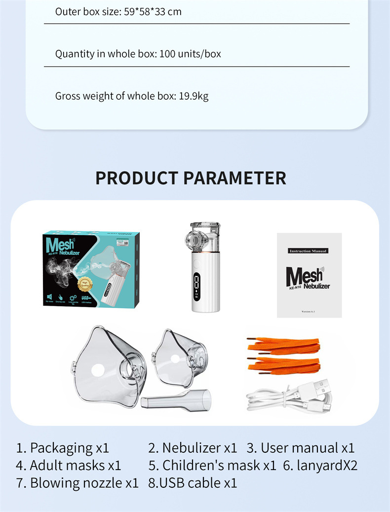 Dobíjací ručný atomizér pre domácnosť, lekárska trieda, ultrazvukový atomizér s veľkým objemom hmly, inteligentný inhalačný atomizér